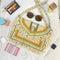 - "Beachcomber" Jute Handbag: This beachcomber jute handbag is a fun and stylish accessory that is perfect for your next trip to the beach. The natural jute material and colorful design make it a trendy and fashionable accessory that is perfect for any beach outfit. The spacious interior of the bag is perfect for carrying all your beach essentials, including your towel, sunscreen, and sunglasses. The bag is durable and long-lasting, ensuring that it will serve you well for years to come. The comfortable handles make it easy to carry the bag around, even when it is loaded with your beach gear. This beachcomber jute handbag is a must-have for anyone who loves spending time at the beach.